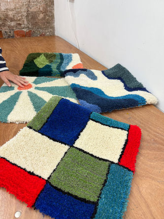 Ellie Carr-Smith is an artist specialising in bespoke rug tufting, creating unique, hand-tufted rugs, cushions, and artworks. Her designs are sold through interior design commissions, independent galleries, and her own online shop. In addition to her creative work, Ellie also runs rug tufting workshops across the UK, sharing her expertise with those eager to learn the craft. Whether you're looking for a custom piece or interested in learning the art of rug tufting yourself, Ellie offers a range of services tailored to your needs. For inquiries or to explore available products and workshops, click the relevant link or get in touch for more details.